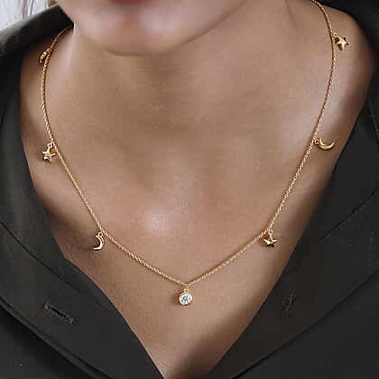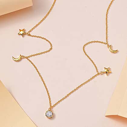 Moissanite Necklace (Size - 20) in 18K Vermeil Yellow Gold Plated Sterling Silver, Silver Wt 5.85 GM