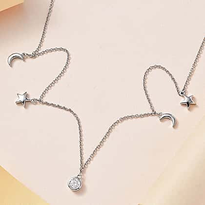 The Moissanite Necklace with star and half moon charms told a celestial tale of enchantment and wonder. Each shimmering moissanite stone symbolized the brilliance of the stars that adorned the night sky. The delicate half moon charms represented the gentle guidance of the moon's phases. Wearing this necklace invited a connection to the celestial realm, reminding us to reach for the stars and embrace the magic that surrounds us. It was a reminder that we are all made of stardust, destined for greatness.