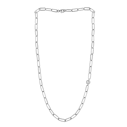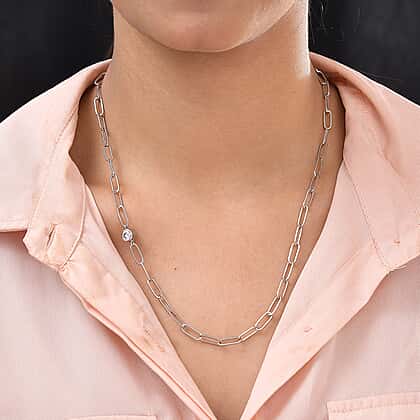 Moissanite Paperclip Necklace Size 18 in Sterling Silver, Silver Wt. 9.15 Gms