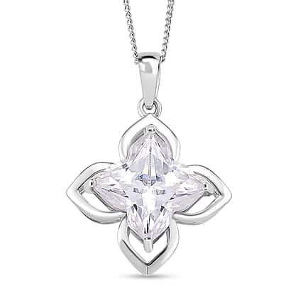 Moissanite Pendant with Chain (Size 18) in Rhodium Overlay Sterling Silver 6.000 Ct.