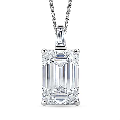 Moissanite Pendant with Chain (Size 18) in Rhodium Overlay Sterling Silver 10.22 Ct.