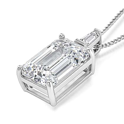 Add a modern edge to your jewellery collection with this distinctive moissanite pendant, featuring a sleek rectangular cut that delivers sharp brilliance and clean lines. Set in rhodium-plating on 925 sterling silver, the stone reflects light in a structured, mirror-like pattern, creating a refined yet contemporary look. The elongated design offers a flattering drop on the neckline, making it ideal for layering or wearing solo as a statement piece. Designed with a secure setting and paired with a fine chain, it combines durability with everyday comfort. Perfect for those who prefer a more geometric, fashion-forward style, this pendant brings a fresh take to classic sparkle.