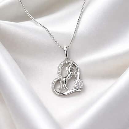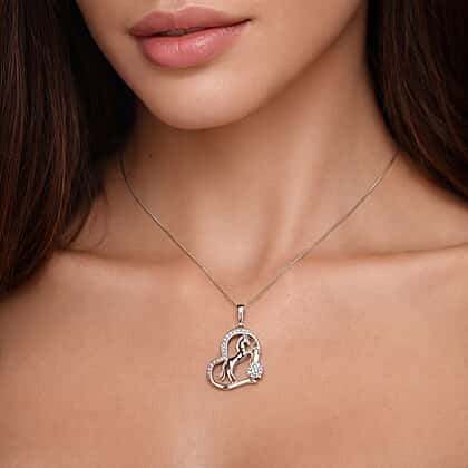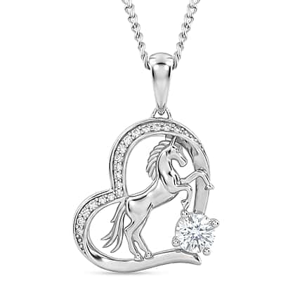 Moissanite Pendant with Chain (Size 18) in Rhodium Overlay Sterling Silver