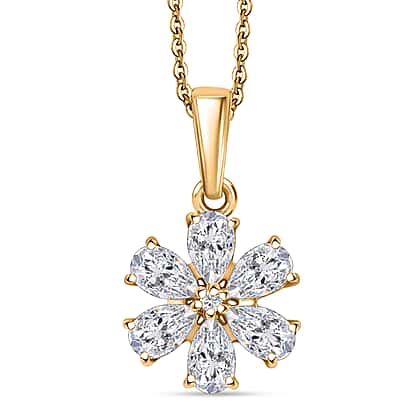 D'Joy Moissanite Floral Pendant with Chain (Size 20) in Yellow Gold Plated Sterling Silver 1.31 Ct.