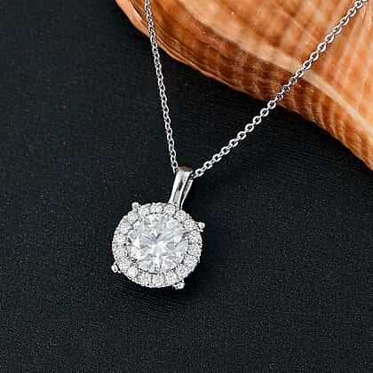 Moissanite Pendant with Chain (Size 20) in Rhodium Overlay Sterling Silver 2.07 Ct.