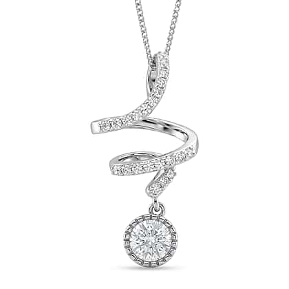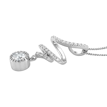 Moissanite Round Pendant with Chain (Size 18) in Rhodium Overlay Sterling Silver 1.09 Ct.