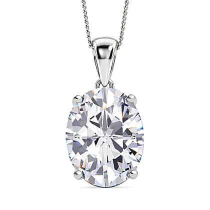 Moissanite Solitaire Pendant with Chain (Size 18) in Rhodium Overlay Sterling Silver 10.00 Ct.