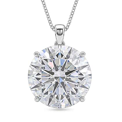 Moissanite Solitaire Pendant with Chain (Size 18) in Rhodium Overlay Sterling Silver 30.00 Ct.