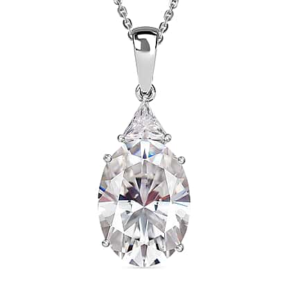 MONSTER DEAL - D'Joy Moissanite Pendant with Chain (Size 20) in Rhodium Overlay Sterling Silver 13.43 Ct.