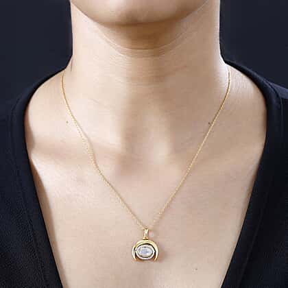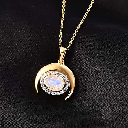 Moon Glow Moonstone & Natural Zircon Pendant with Chain (Size 20) in 18K YG Vermeil Sterling Silver 1.04 Ct, Silver Wt. 5.33 Gms