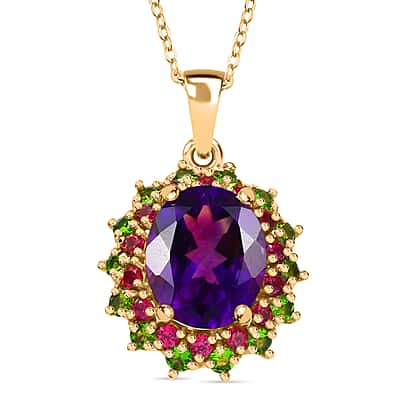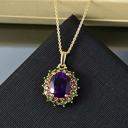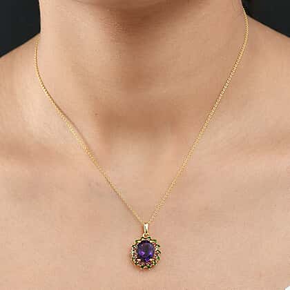 Moroccan Amethyst, Rhodolite Garnet, Natural Chrome Diopside Pendant with Chain (Size 20) in 18K YG Vermeil Sterling Silver 1.06 ct Silver Wt. 5.17 Gms 4.710 Ct.