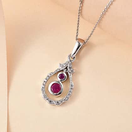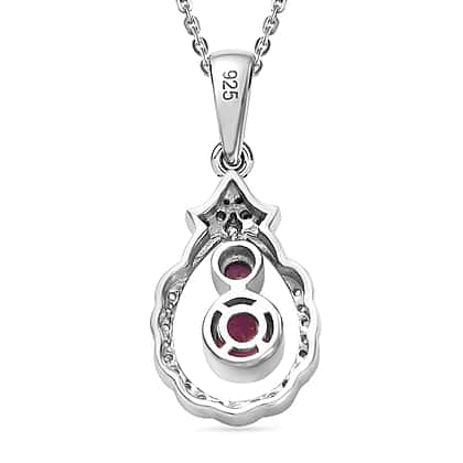 Mozambique Ruby & White Zircon Pendant with Chain (Size 20) in Rhodium Overlay Sterling Silver
