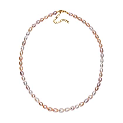 Multi Color Fresh Water Pearl Necklace (Size - 18-2 Ext) with Lobster Clasp in 18K Vermeil Yellow Gold Plated Sterling Silver 132.00 Ct.