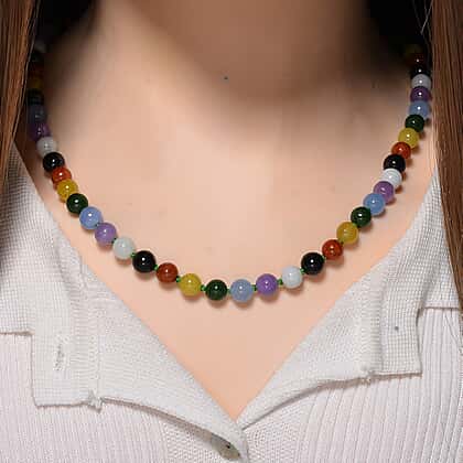 Multi-Colour Jade Stone Necklace (Size - 30) 350.00 Ct.