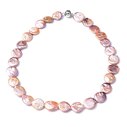Multi Colour Baroque Pearl Necklace in Rhodium Plated Sterling Silver Size 20
