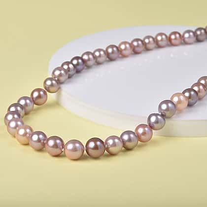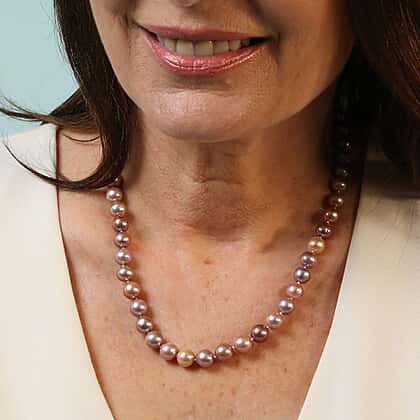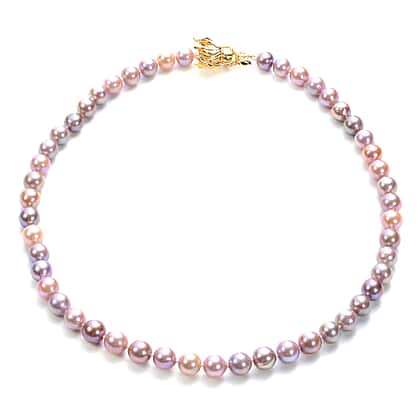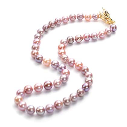 Multi Colour Edison Pearl and Chrome Diopside Necklace (Size20) with Dragon Lock in Yellow Gold Overlay Sterling Silver