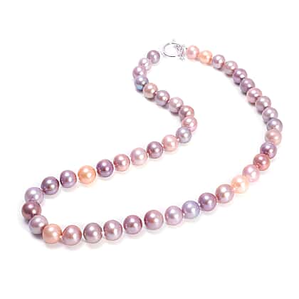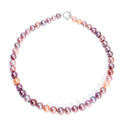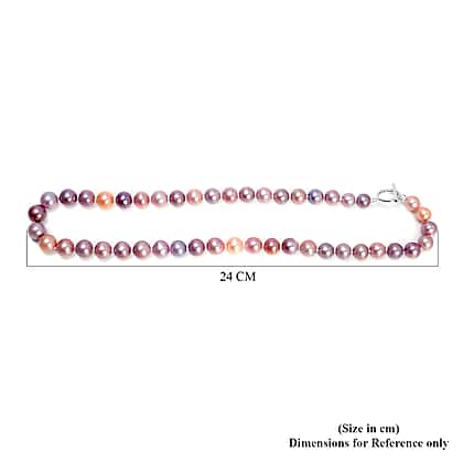 Multi Colour Edison Pearl Necklace (Size 20) in Rhodium Overlay Sterling Silver