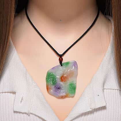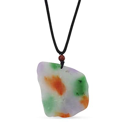 Add a dash of nature-inspired charm to your everyday look with this multicoloured jade stone necklace (Size 28) featuring an adjustable thread. Carved from natural jadeite, this pendant showcases a rare mix of vivid greens, soft purples, and warm amber hues, each shade representing serenity, wisdom, and vitality. No two pieces are alike, making each necklace uniquely yours. The freeform shape adds an artisanal touch, while the smooth, tactile surface makes it a joy to wear. Strung on a durable black cord with a sliding knot and wooden bead accent, it’s lightweight, comfortable, and perfect for women who value meaning and individuality.