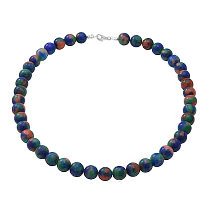 250 Ct. Multi Colour Jasper Beads Necklace in Sterling Silver 18 Inches