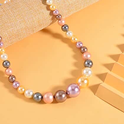 Add a soft sparkle to your look with this Multi Colour Shell Pearl Necklace. Finished with a magnetic clasp made from pure white stainless steel, the necklace features 37 pastel-hued pearls that lend an elegant finish. The necklace measures 20 inches, falling right below the collarbone to add a delicate embellishment to your neckline.