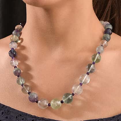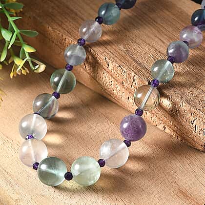 Multi Fluorite & African Amethyst Necklace (Size - 20-1 Ext) with Senorita Clasp (APPROX. 600 Cts)