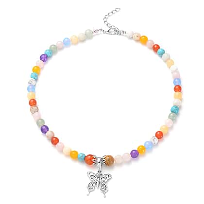 Multi Gemstones Necklace Size 18 in Silver Tone