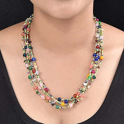 Multi Gemstones Beads Necklace (Size 20) in Platinum Overlay Sterling Silver 184.25 Ct