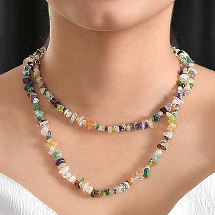 This stunning Multi Gemstone Bead Necklace is a mesmerising display of craftsmanship and vivid beauty of colourful gemstones. The different gem shades highlight the different facets of the wearer. The multi-coloured look adapts to most occasions and stirs up your dressing with the eye-catching length.