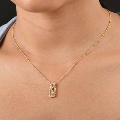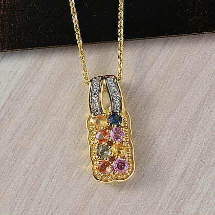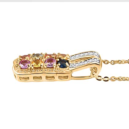 Multi Sapphire, White Zircon Pendant with Chain (Size 20) in 18K YG Vermeil Sterling Silver 0.10 ct 0.900 Ct.