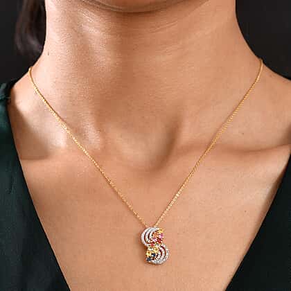Playful and showstopping, this multi-sapphire pendant can add a blast of colours to your look. Crafted in rhodium overlay sterling silver, it features an S-shaped design encrusted with white zircons and diagonally adorned with an assortment of saturated colours. It features multicoloured sapphires in deep blue, red, orange, yellow, and green tones. This gold chain pendant is perfect for fashion maximalists who love to stay in a spirited mood and don't mind spicing up things a little.