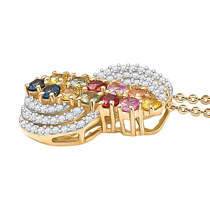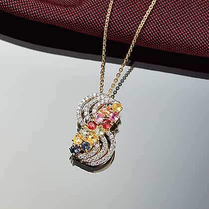 Multi Sapphire, White Zircon Pendant with Chain (Size 20) in Rhodium Overlay Sterling Silver 1.00 ct 2.200 Ct.