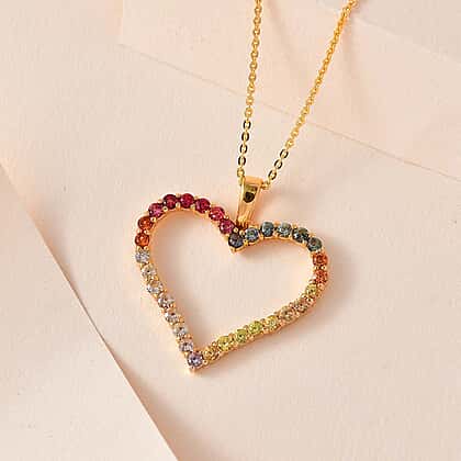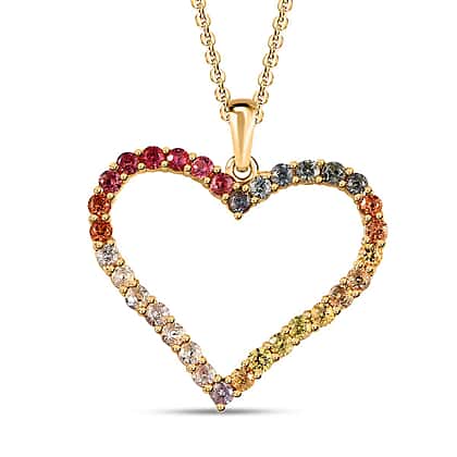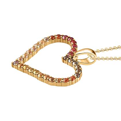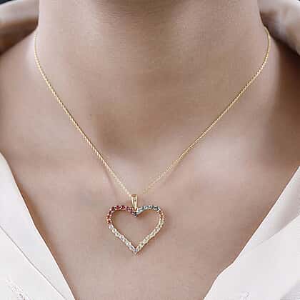 Multi Sapphire Heart Pendant with Chain (Size 20) in 18K Vermeil Yellow Gold Plated Sterling Silver 1.60 Ct