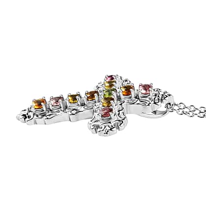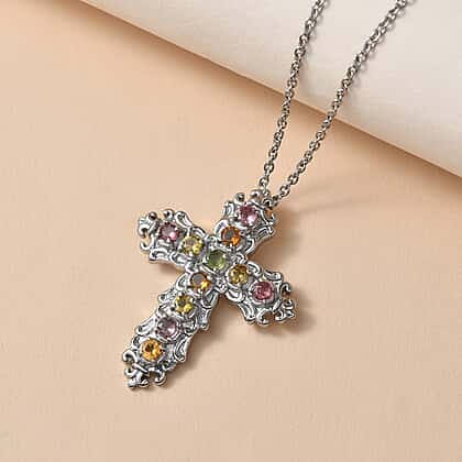 Multi-Tourmaline Cross Pendant with Chain (Size 20) 1.42 Ct.