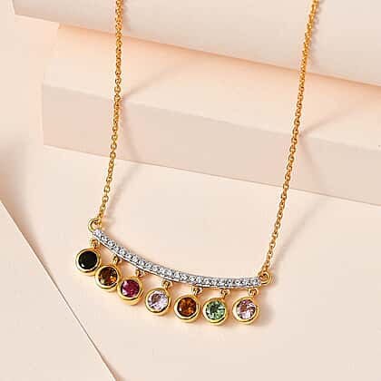 Multi-Tourmaline & Natural Zircon Necklace (Size - 20) in 18K Yellow Gold Vermeil Plated Sterling Silver 2.50 Ct