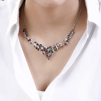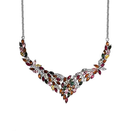 Multi-Tourmaline Necklace (Size - 20) in Platinum Overlay Sterling Silver 15.88 Ct, Silver Wt. 16.56 Gms