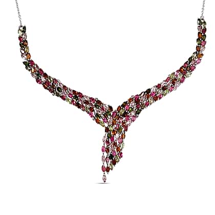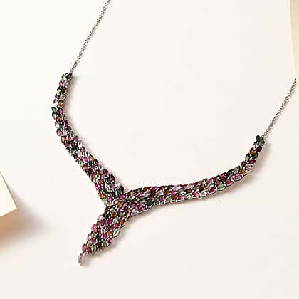 Multi-Tourmaline Necklace (Size - 20) with Lobster Lock in Platinum Overlay Sterling Silver 13.28 Ct, Silver Wt. 14.18 Gms
