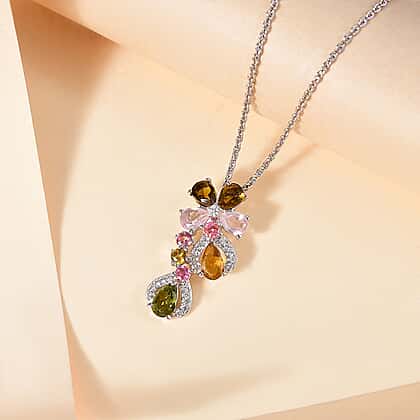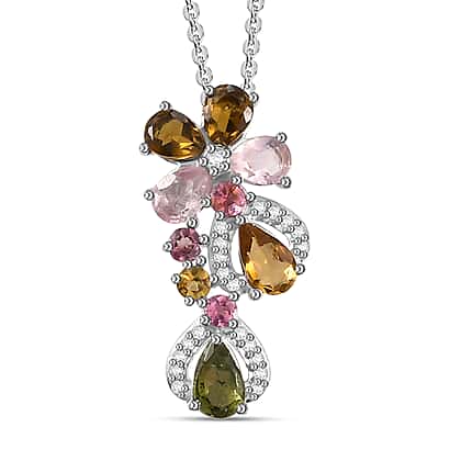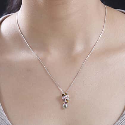 Multi-Tourmaline & White Zircon Pendant with Chain (Size 20) in Rhodium Overlay Sterling Silver 1.83 Ct.