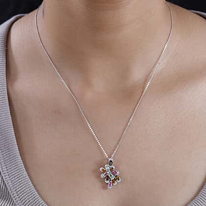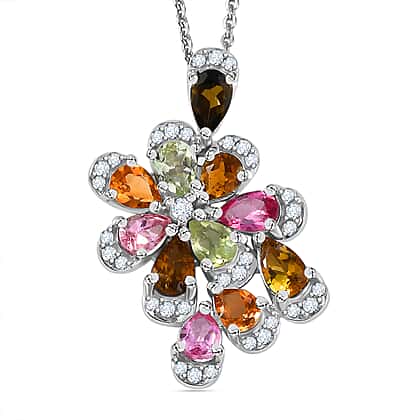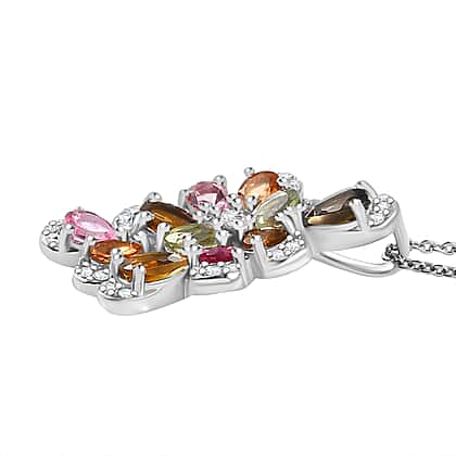 Multi-Tourmaline & White Zircon Pendant with Chain (Size 20) in Rhodium Overlay Sterling Silver 2.27 Ct.