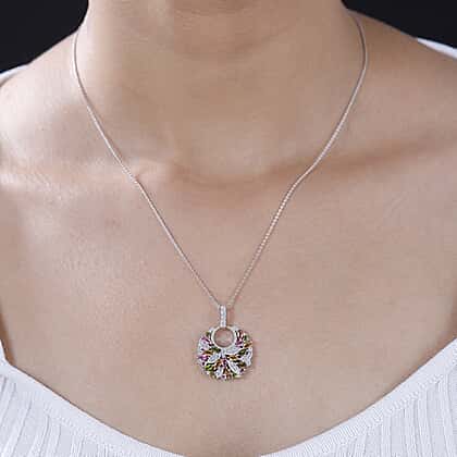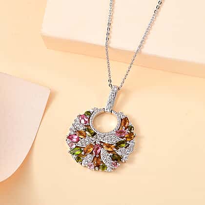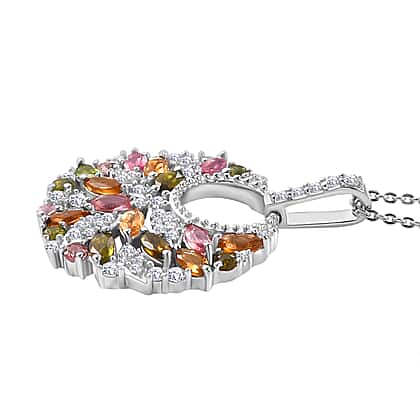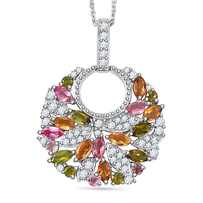 Multi-Tourmaline & White Zircon Pendant with Chain (Size 20) in Rhodium Overlay Sterling Silver 2.51 Ct.