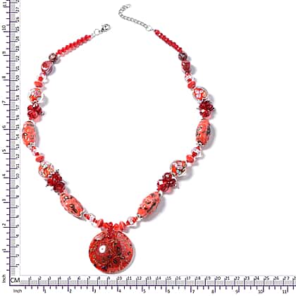 Murano Style Glass, Ceramic, Simulated Ruby, Simulated Grey Moonstone, White Shell and Multi Colour Beads Necklace (Size 28) in Silver Plated