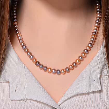 Radiating a luminescent glow, this Natural AAA Multi Colour Edison Pearl Necklace is designed to enhance your inherent feminine beauty. Soft hues emanate from each Fresh Water Pearl Bead, as if mirroring the many hues of the moon reflecting on the surface of water at night. The magnetic clasp is set in yellow gold overlay sterling silver, giving it an elegant finish.