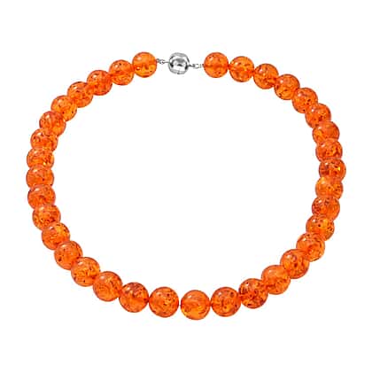 Natural AIG Certified Baltic Amber (14mm) Necklace (Size - 20) in Rhodium Overlay Sterling Silver with Magentic Lock, 300.00 Ct.