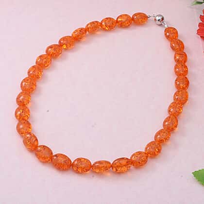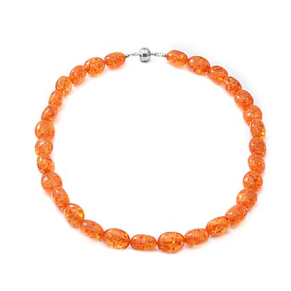 Baltic Amber Beads Necklace Size 20 in Rhodium Plated Sterling Silver