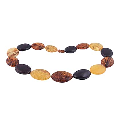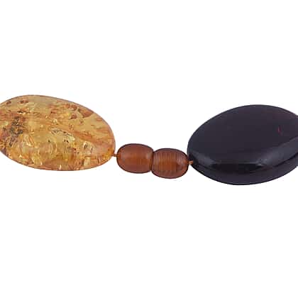 This fancy beaded necklace is crafted with amber and sterling silver. Fossilised Amber that is naturally extracted from fossilised tree sap are threaded together on the metal string to form this classic piece of jewellery. The honey dew elegance of amber illuminates your outfit. Natural Baltic Ambers are finely detailed with cabochon cut to showcase their translucent golden to brown hues.
