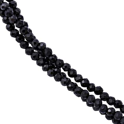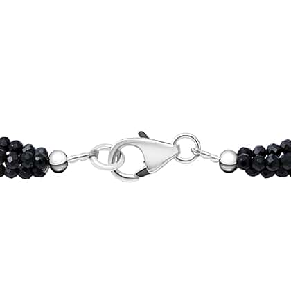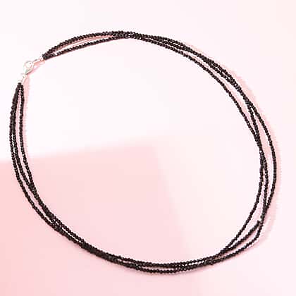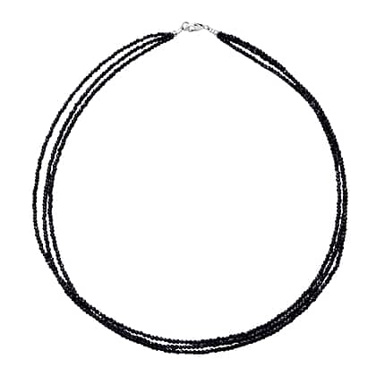 Natural Black 3 String Black Spinel Ball Diamond Cut Necklace With Lobster Clasp (Size - 20) in Sterling Silver 55.0 Ct.