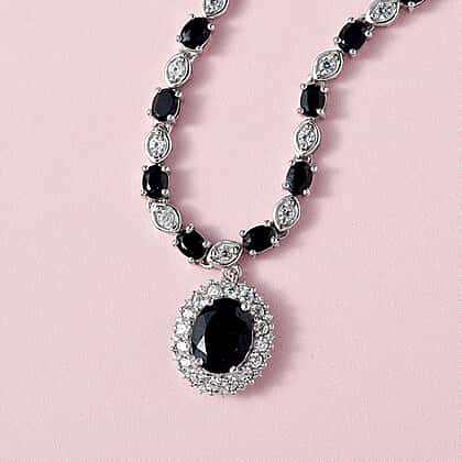 Natural Boi Ploi Black Spinel and Natural Zircon Necklace (Size - 20) in Platinum Overlay Sterling Silver 17.06 Ct, Silver Wt 18.00 Gms