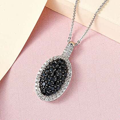 Natural Boi Ploi Black Spinel and Natural Zircon Pendant with Chain (Size 20) in Platinum Overlay Sterling Silver 2.50 Ct