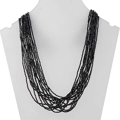 280 Carat Natural Boi Ploi Black Spinel Multi Strand Beaded Necklace in Silver 20 Inch
