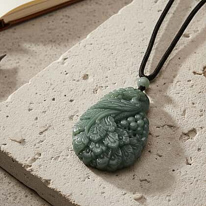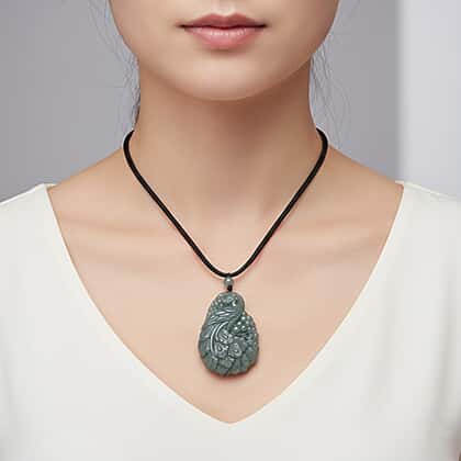 Natural Jade Peacock Necklace (Size - 30 Adjustable) with Cotton Thread 155.00 Ct.