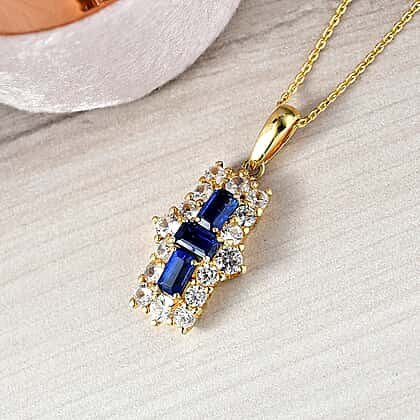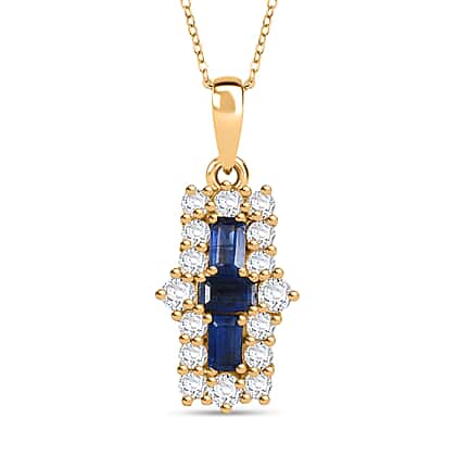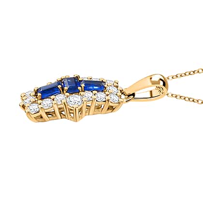 Illuminate your fashion game with this trilogy pendant, featuring captivating kashmir kyanite in deep blue colour, lying at the centre of the piece. Dazzling white zircons surround the trio, adding extra brilliance and shine. Meticulously crafted in hypoallergenic 925 sterling silver in 18K yellow gold plating, this pendant guarantees durability and comfort to sensitive skin. The lustrous 18K yellow gold plating offers enduring shine and adds a warmth tone. Features a sleek gold-tone chain with a secure closure, this piece ensures comfort and security. The yellow gold tone adds a luxurious touch, making it a versatile addition to your jewellery collection. Give yourself this refined beauty that adds charm to any outfit.